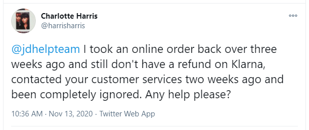 Another JD Sports customer also experienced issues when returning something they’d bought through Klarna.