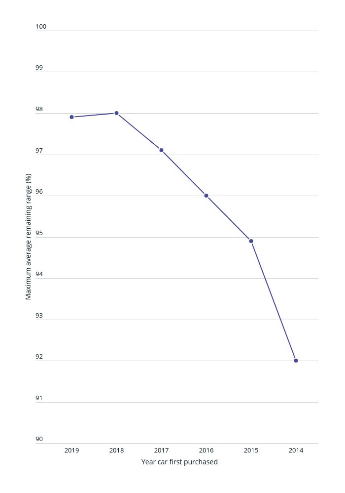 The results show a slight but definite decline in average battery life as electric cars age.