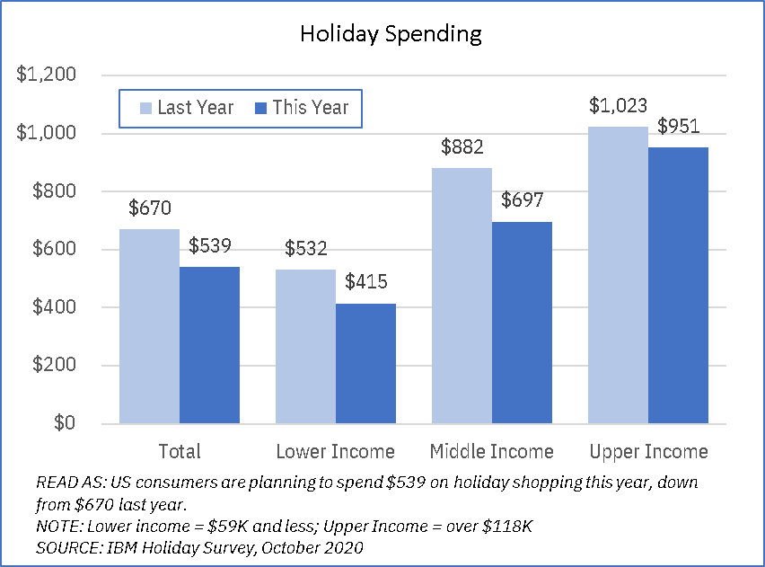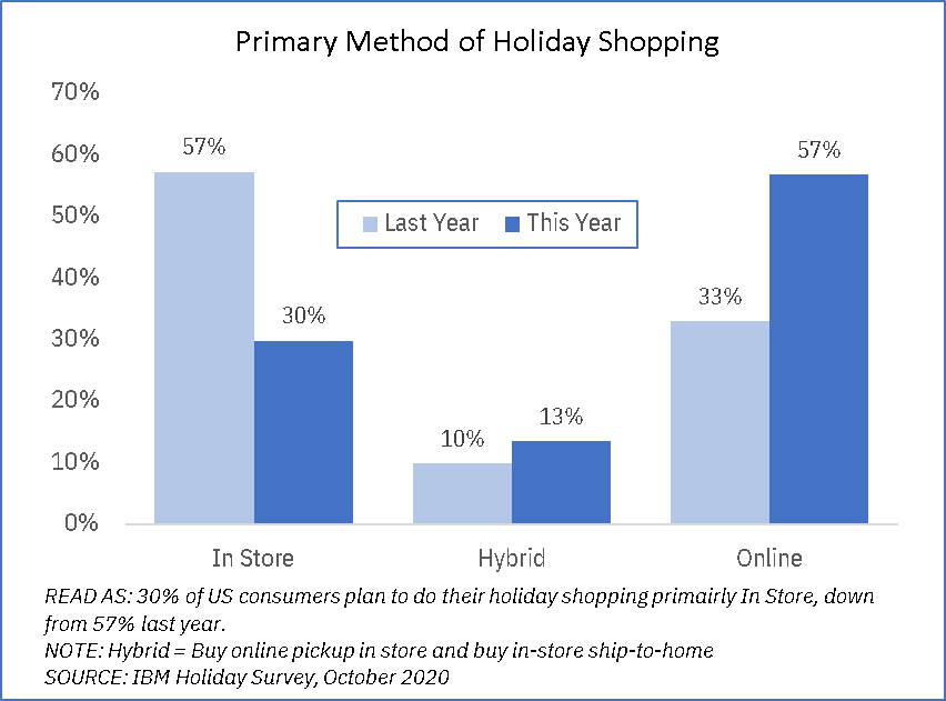 The 2020 holiday season is a real challenge–no one really knows what holiday shopping will be like as there’s no real comparable situation and the macro-economic conditions are very fluid. That being said, from the early data IBM is seeing in consumer spending and retail sales, as well as looking at what consumers have told us with regard to their mindset, we are seeing some trends emerging.