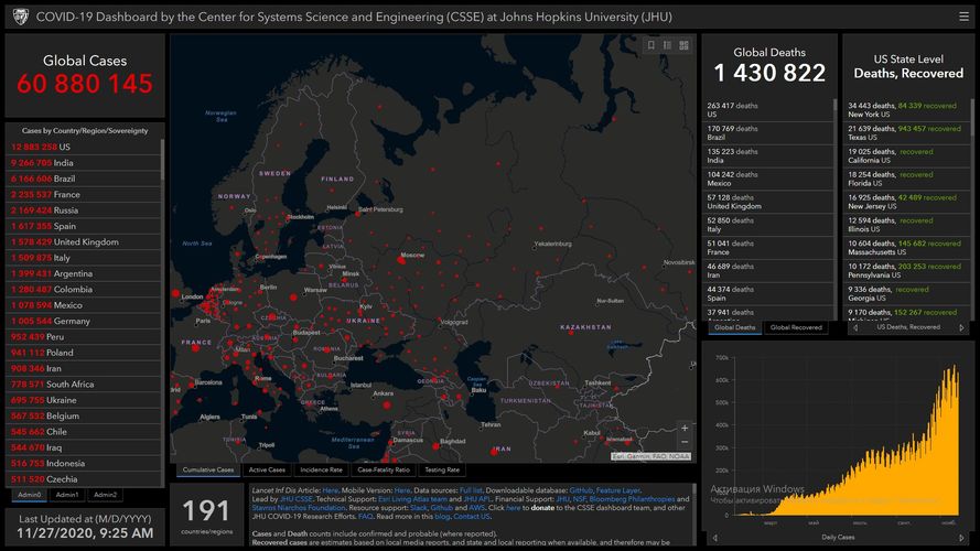 Number of infected with coronavirus exceeds 60.8 million people globally