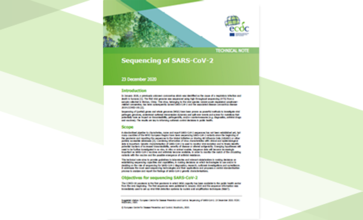 This technical note aims to provide guidelines to laboratories and relevant stakeholders in the European Union (EU), European Economic Area (EEA) and other countries in the WHO European region in making decisions on establishing sequencing capacities and capabilities, in making decisions on which technologies to use and/or in deciding on the role of sequencing for SARS-CoV-2 diagnostics, research, outbreak investigations and surveillance. It addresses the most used sequencing technologies and their applications and proposes a central standardisation process to analyse and report the findings of SARS-CoV-2 genetic characterisations.