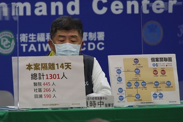 Also on Sunday, Chen said that a COVID-19 case confirmed Saturday had visited the Chung Ping traditional market on Zhongzhou Street in Taoyuan on Jan. 19 and Jan. 20 before she tested positive for the disease.