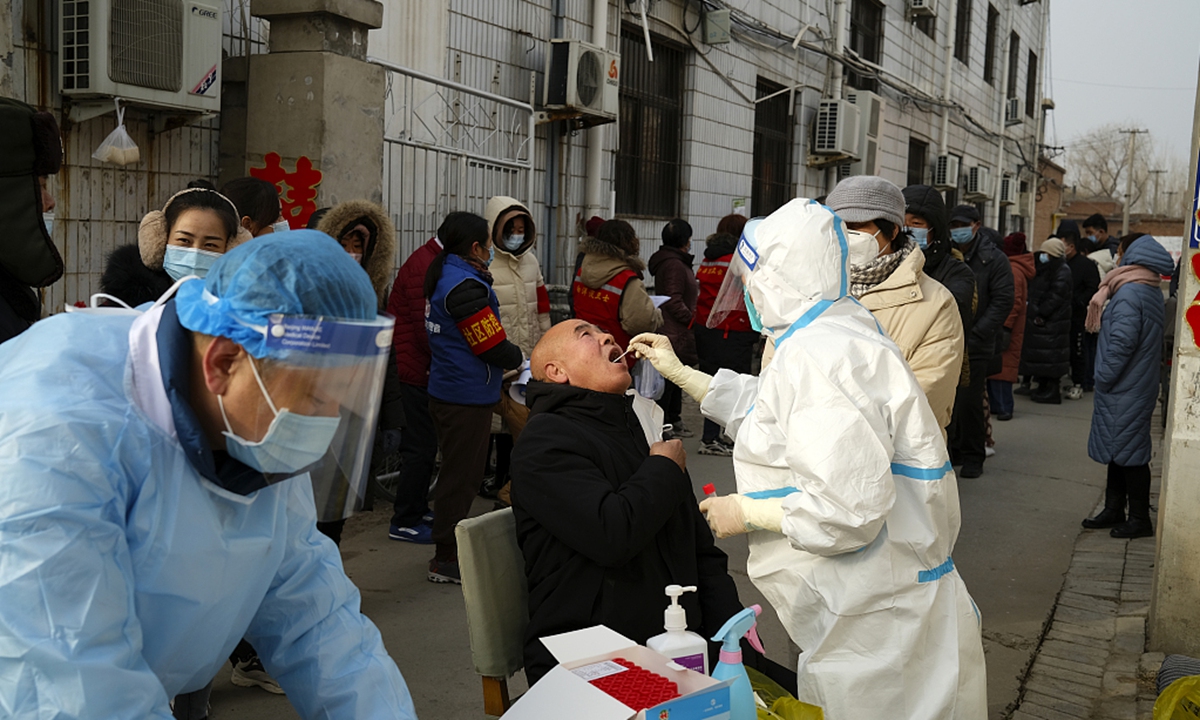 Residents in Xiongan New Area, North China’s Hebei Province queue up for nucleic acid tests on January 14. Photo: VCG